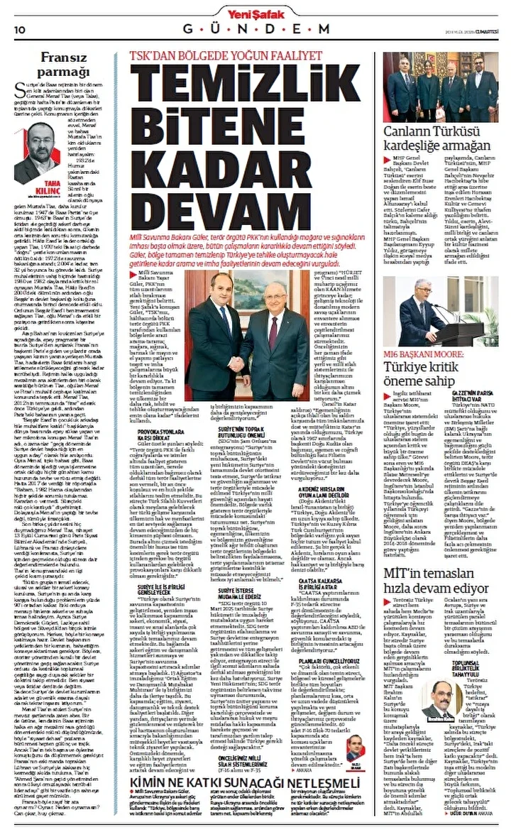 Yeni Şafak Gazetesi’nin 20 Eylül 2025 tarihli birinci sayfasında yer alan manşet ve haberler…